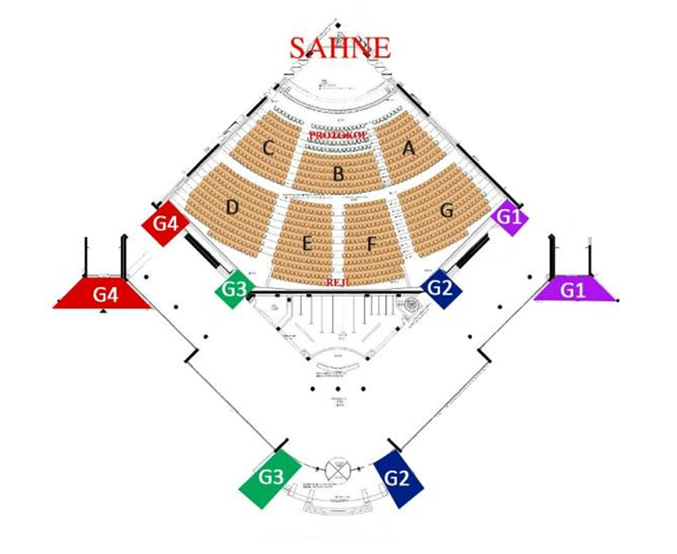 Salonda ilk dört sıra protokole ayrılmıştır.